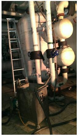 鍋爐化學清洗方法經(jīng)默本環(huán)境多次實踐,不斷完善,其工藝流程成熟、清洗周期短、污垢清洗徹底,具有經(jīng)濟、快捷、令客戶滿意等優(yōu)點。除垢率可達到95%以上,下面是2012年10月對北京財金大學取暖用板式換熱器的現(xiàn)場清洗記錄。